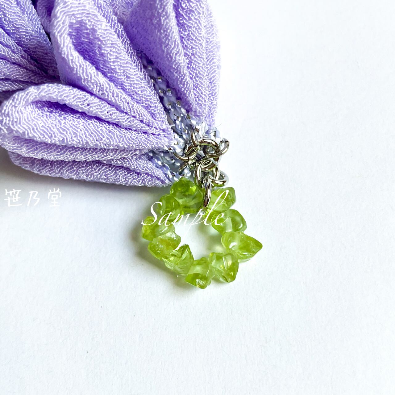 パーツ=金属(色:シルバー)、クリスタルビーズ、天然石(ペリドット)