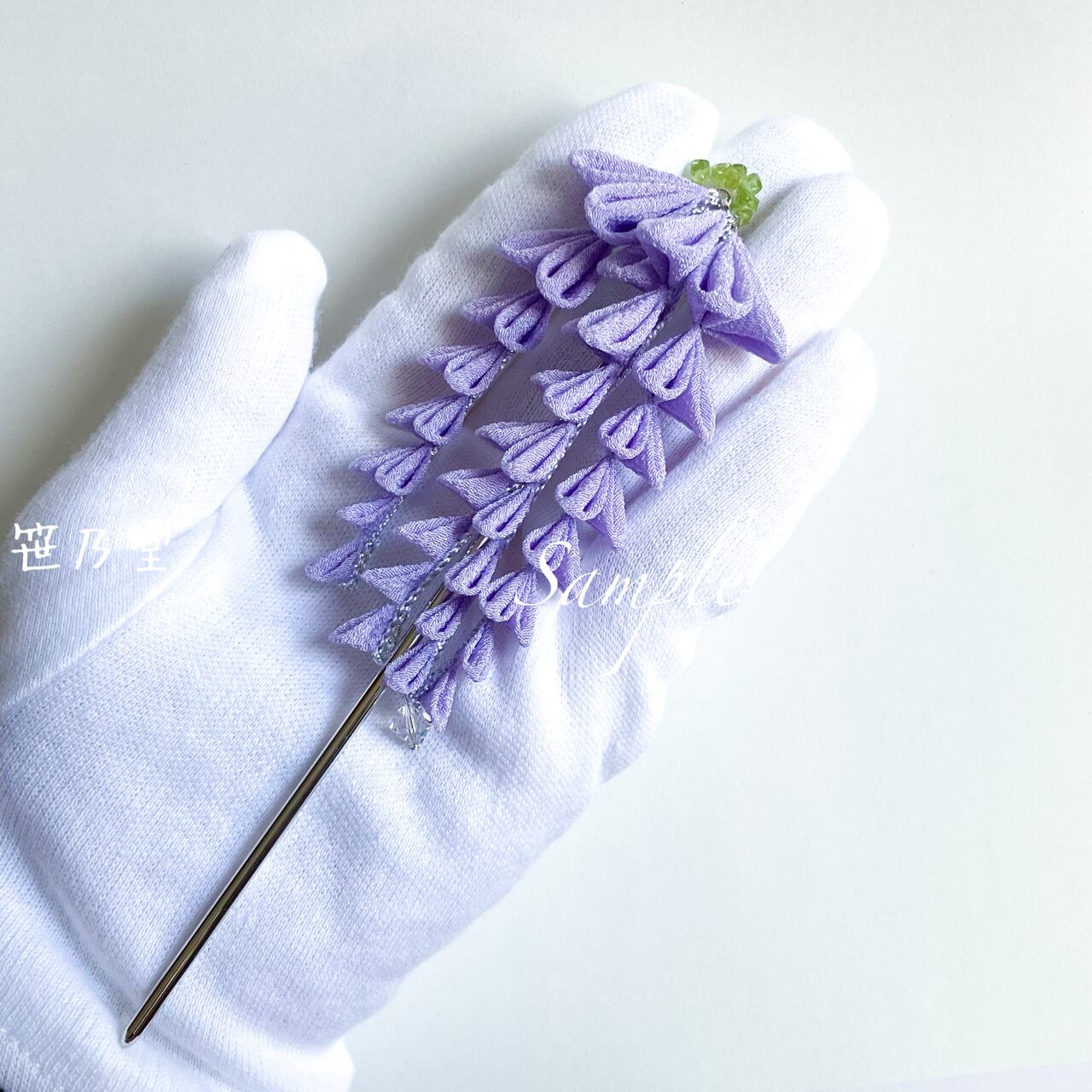 揺れるシルエットがかわいい紫藤のかんざしです。