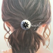 布=キュプラ、パーツ=金属(色:シルバー、金古美)、ヘアゴム(色:ブラック)、パールビーズ