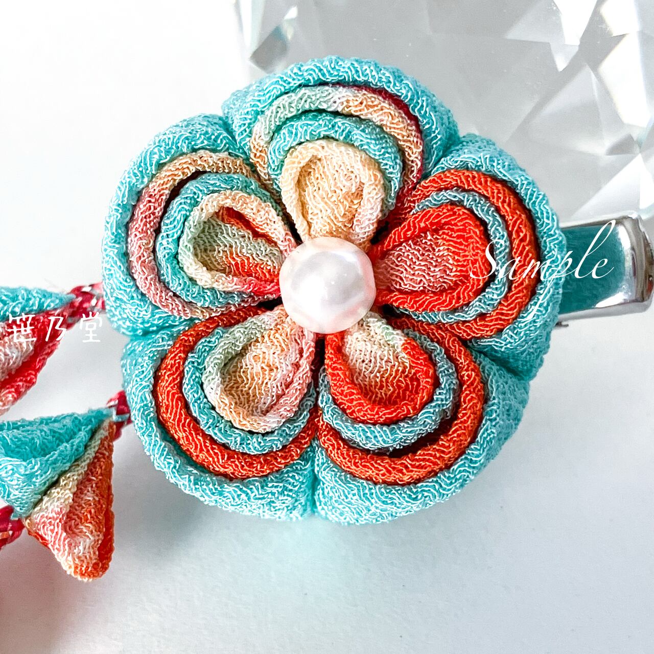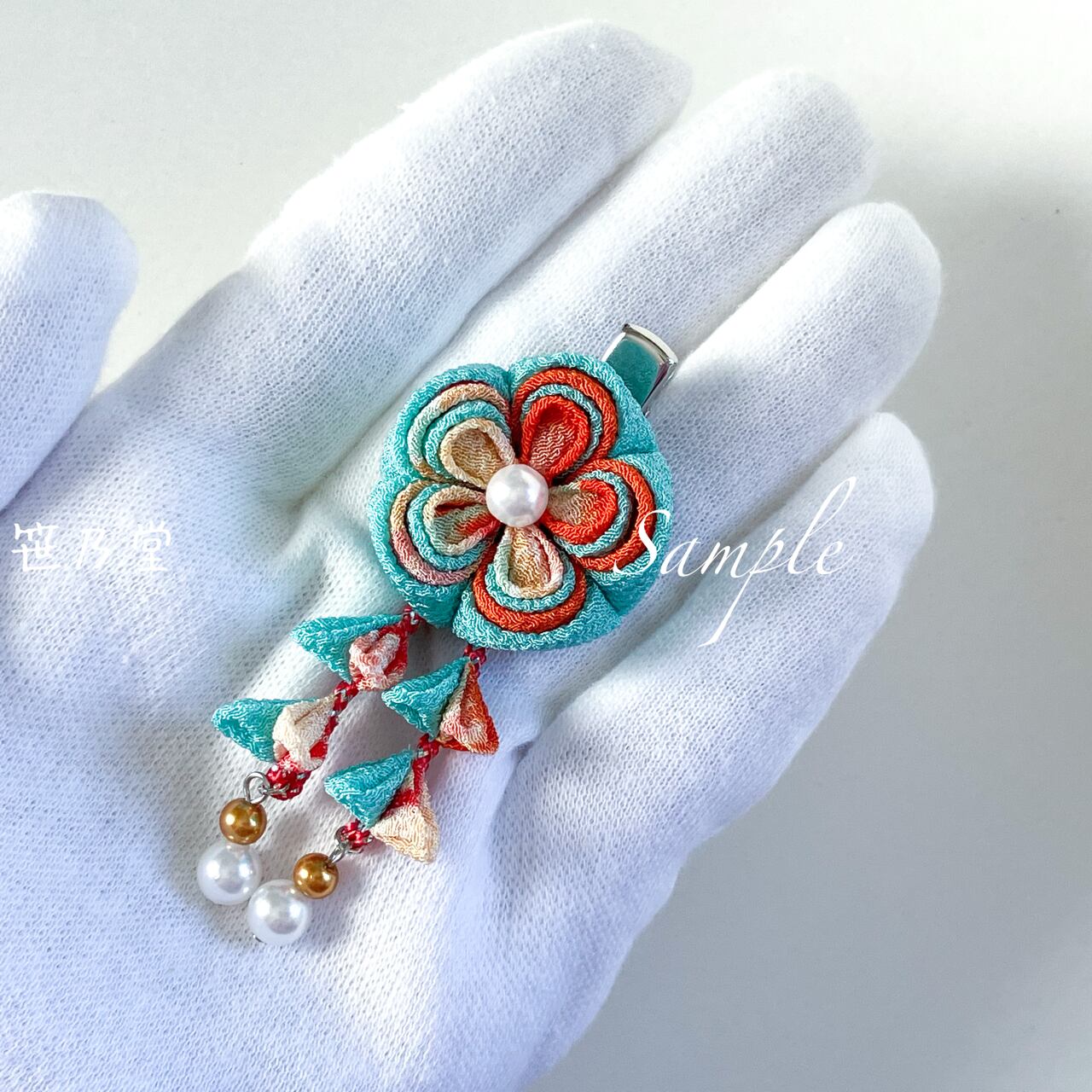 布=一越ちりめん、パーツ=金属(色:シルバー)、パールビーズ