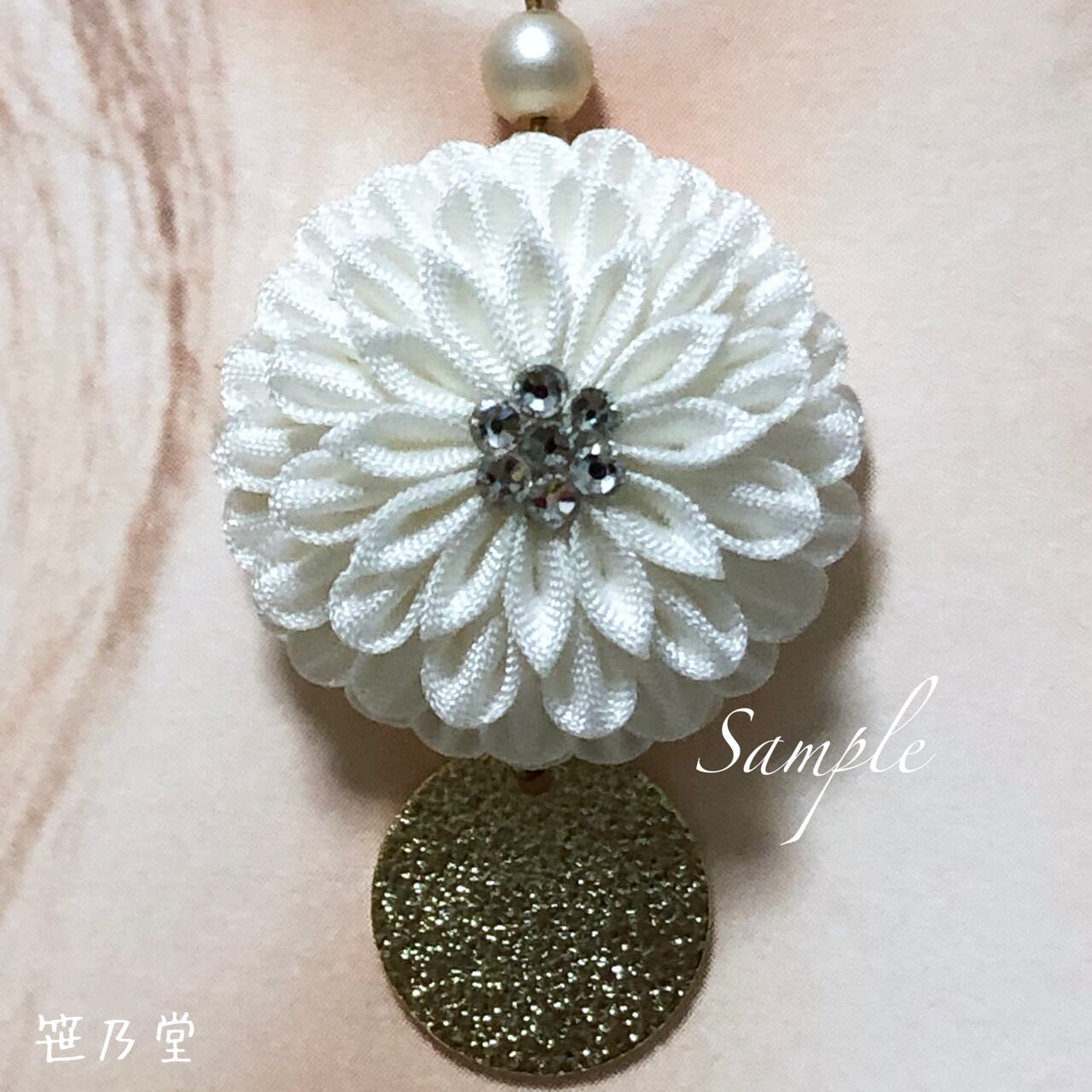 布=キュプラ、パーツ=金属(色:ゴールド)、パールビーズ(ホワイトの艶消し)、スワロフスキー