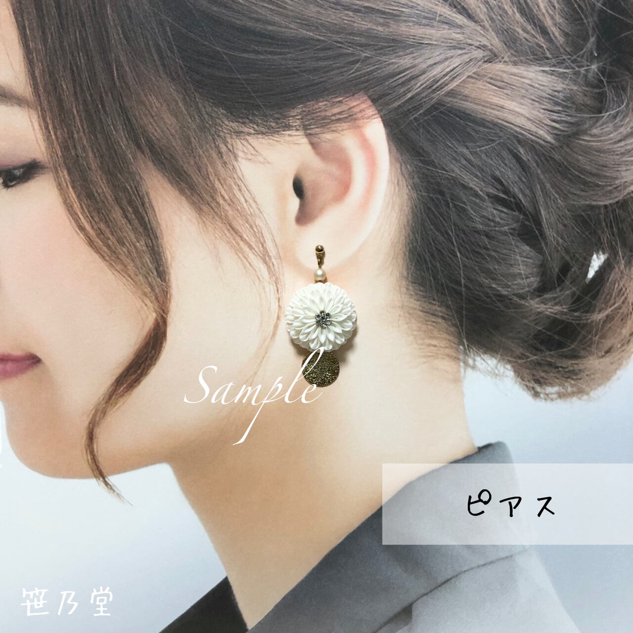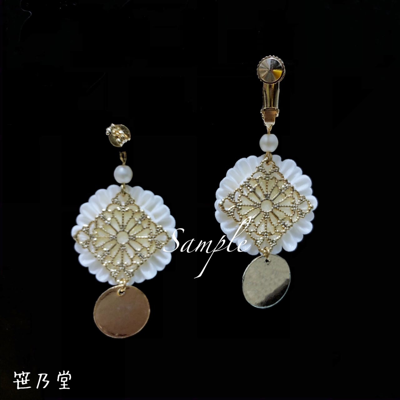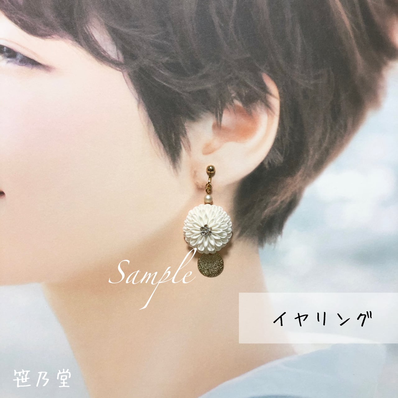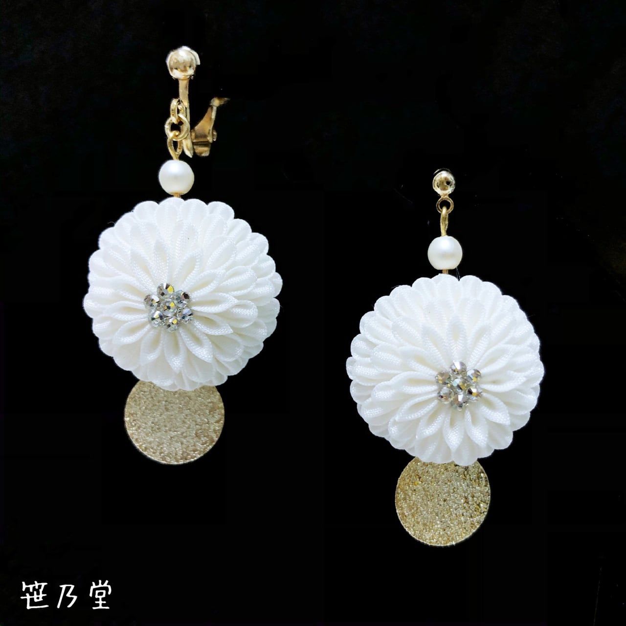 つまみ細工 和小物 耳飾り(ピアス/イヤリング)【白】