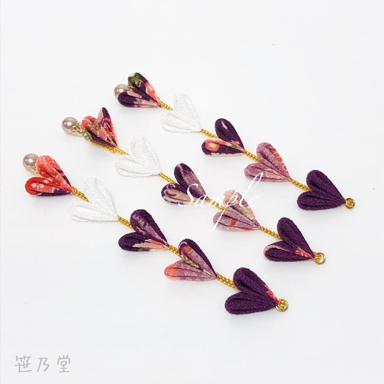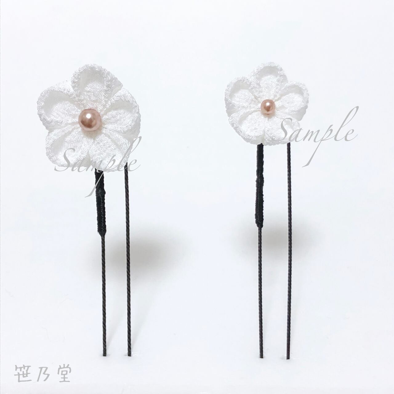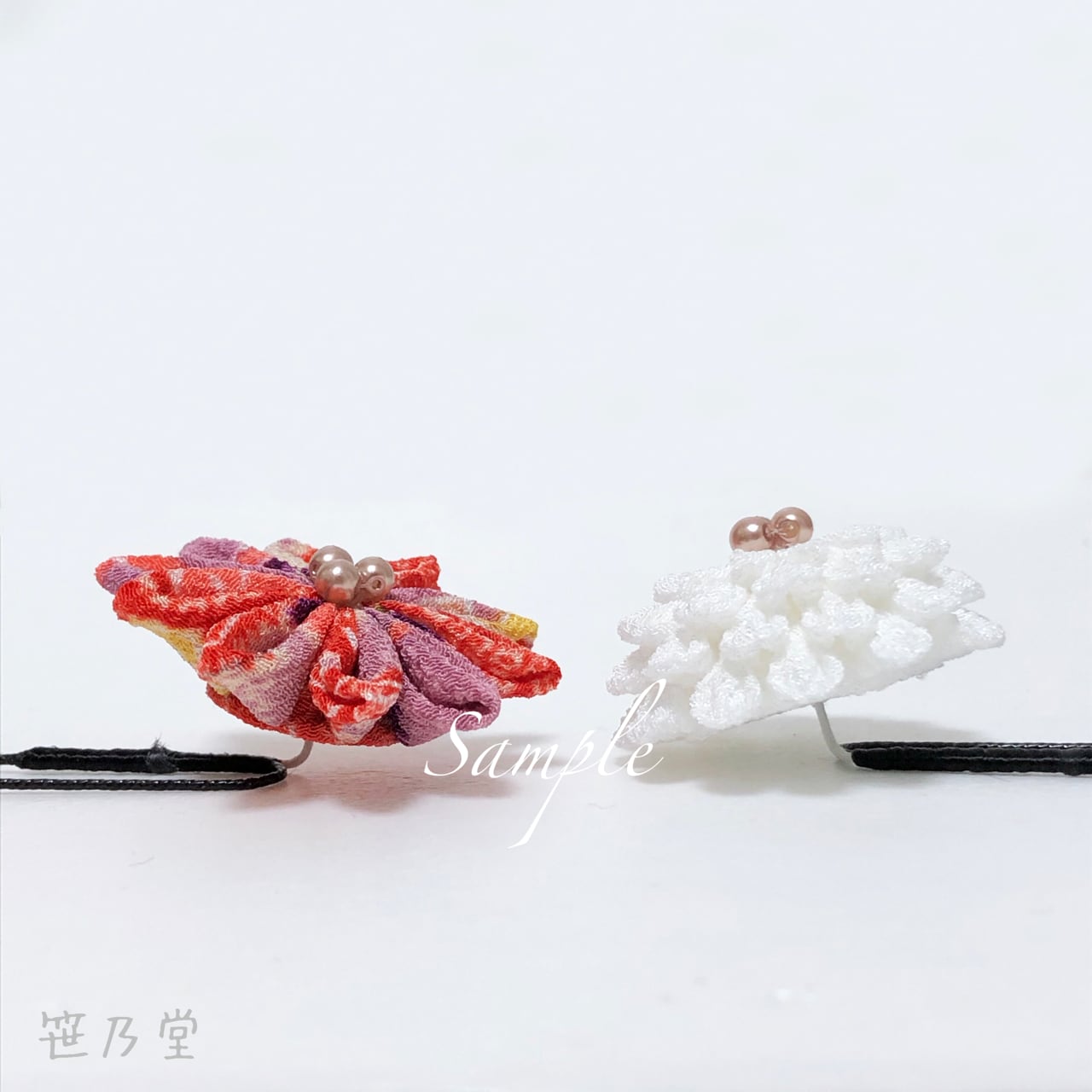 布=一越ちりめん、パーツ=Uピン、パールビーズ