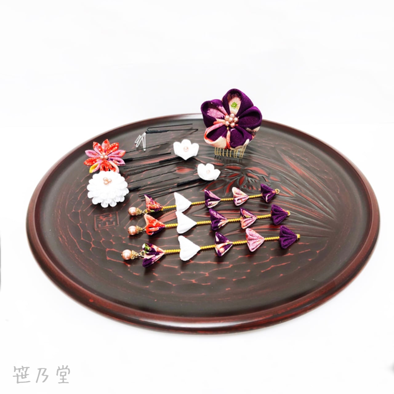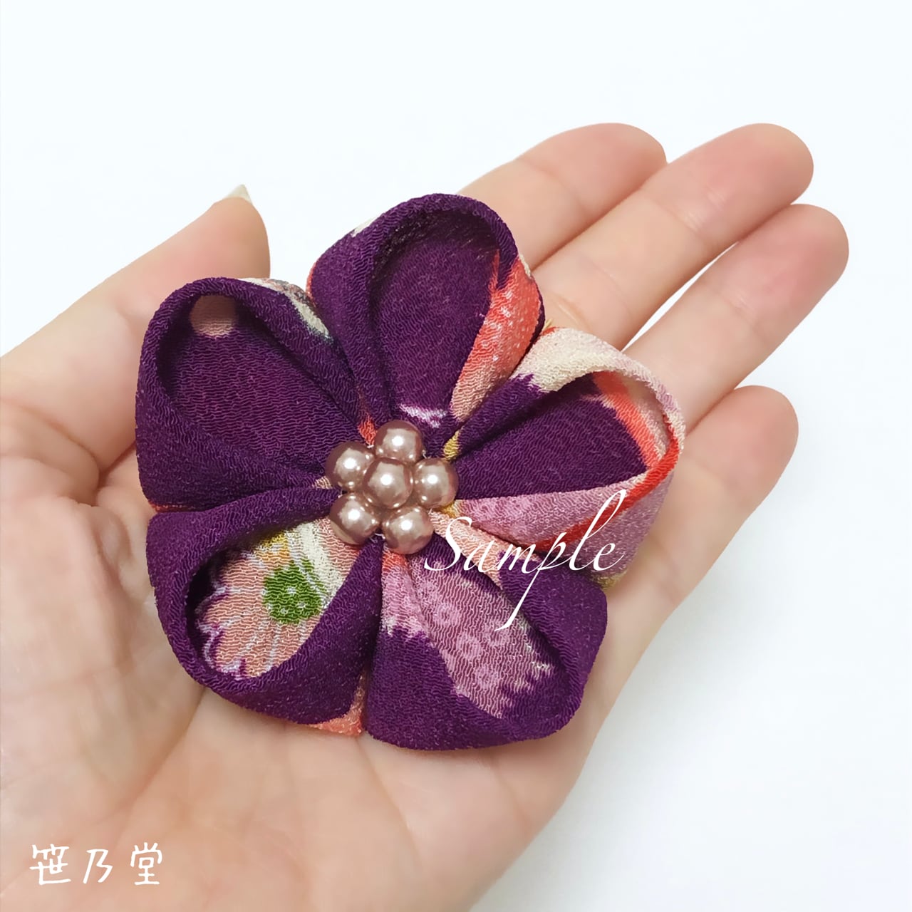 紫をメインに、一越ちりめんで製作しました。