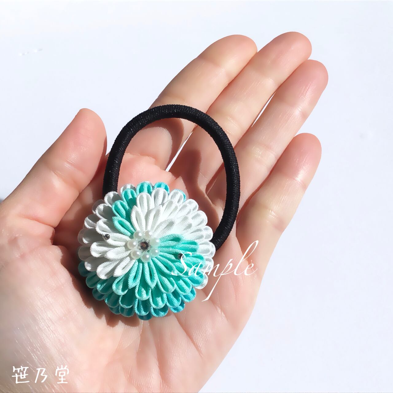 清らかな風と雪が舞い遊ぶようなカラーリングのヘアゴムです。