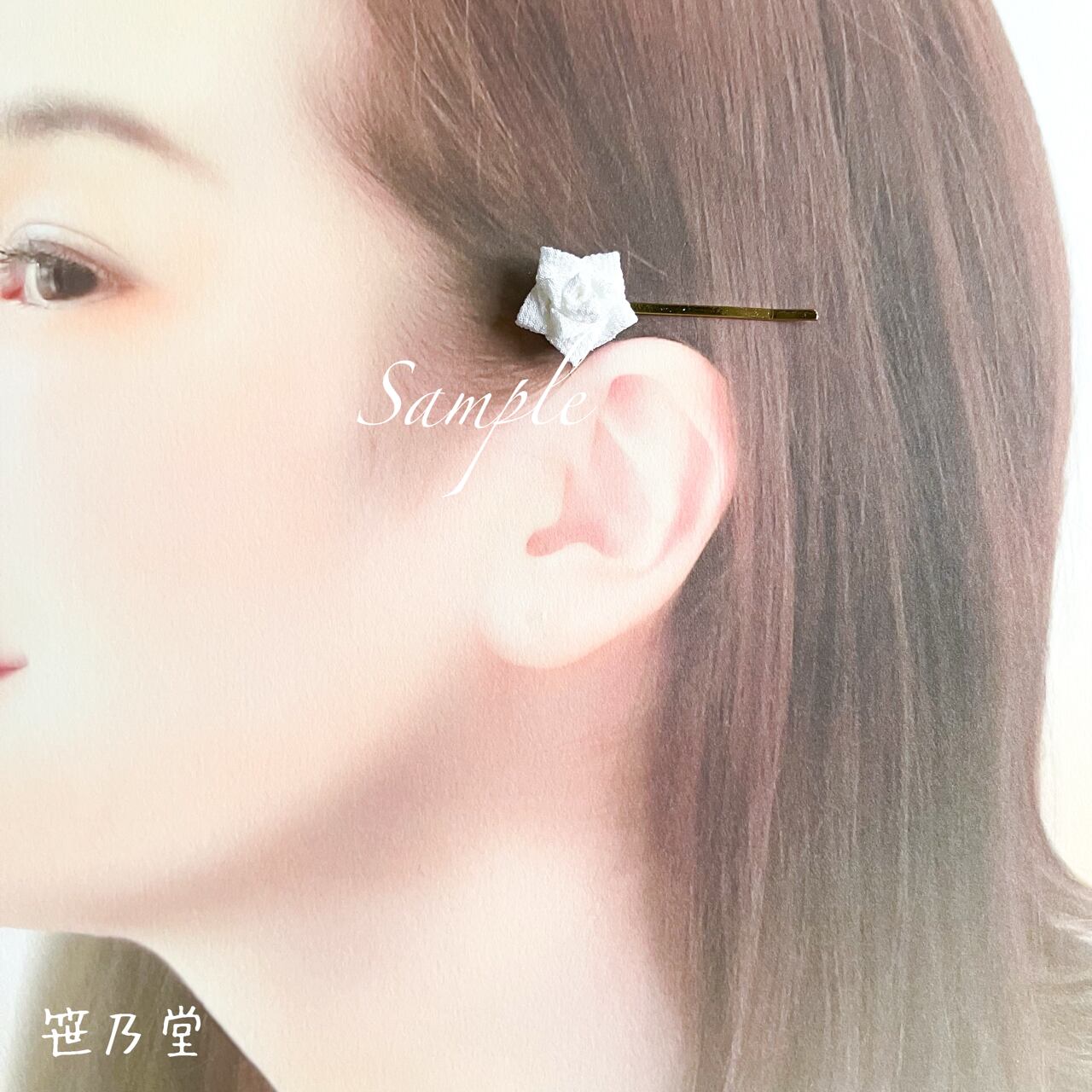 花=約1.8cm、全体=5cm、ヘアピン本体=4.5cm